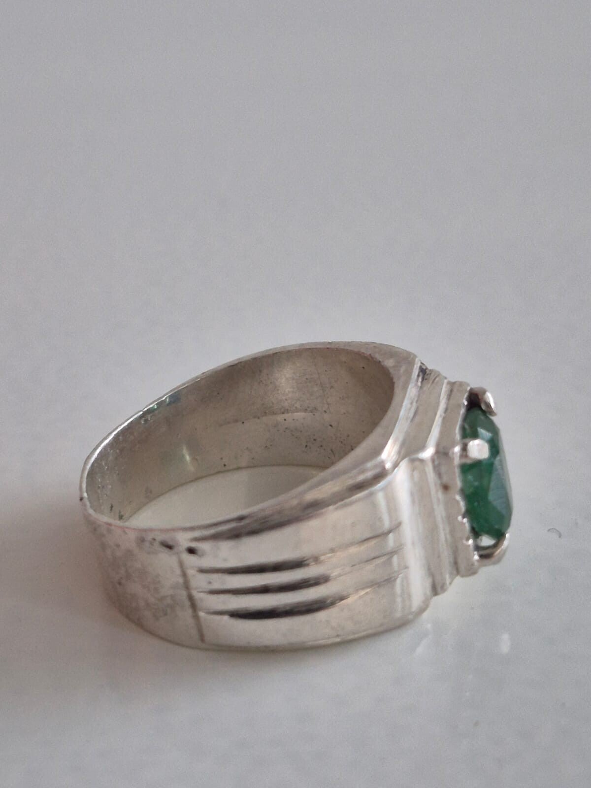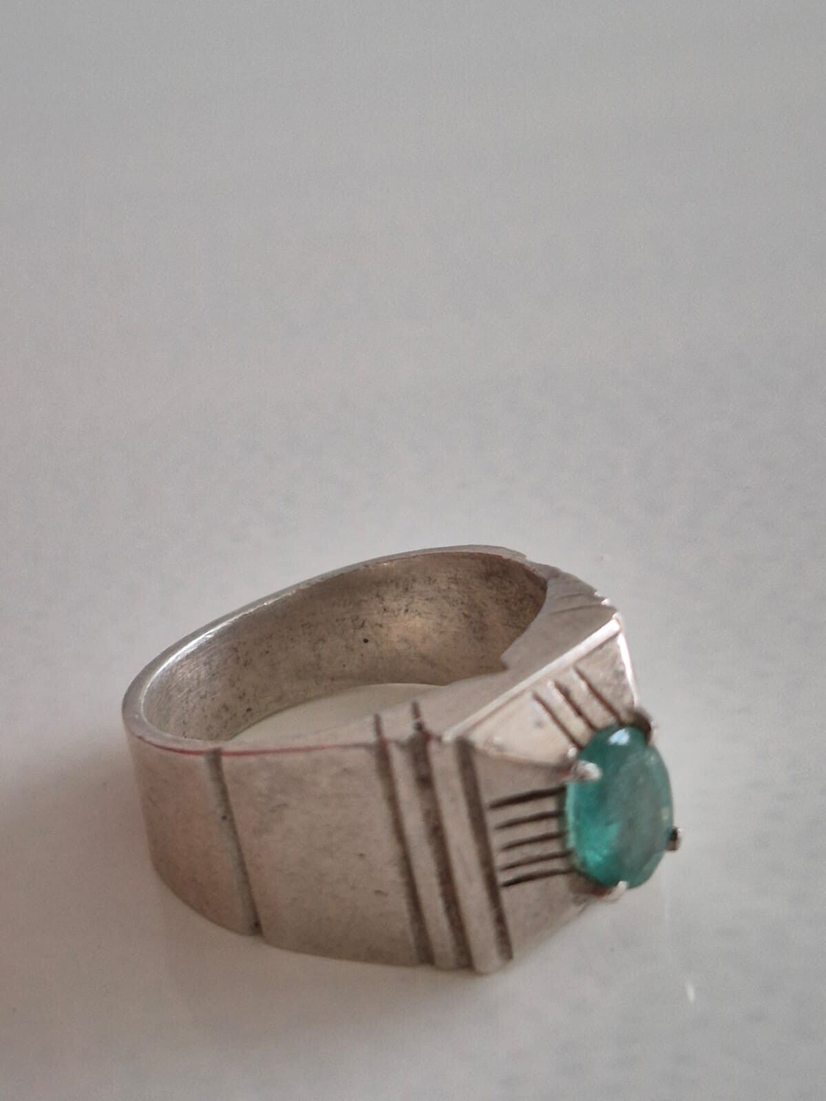 This handmade Afghan men’s emerald ring blends bold design with timeless tradition. Crafted from solid sterling silver, it features a natural oval-cut emerald gemstone at the center, highlighted by clean, engraved lines. Its minimalist yet powerful look makes it perfect for both everyday wear and special occasions.